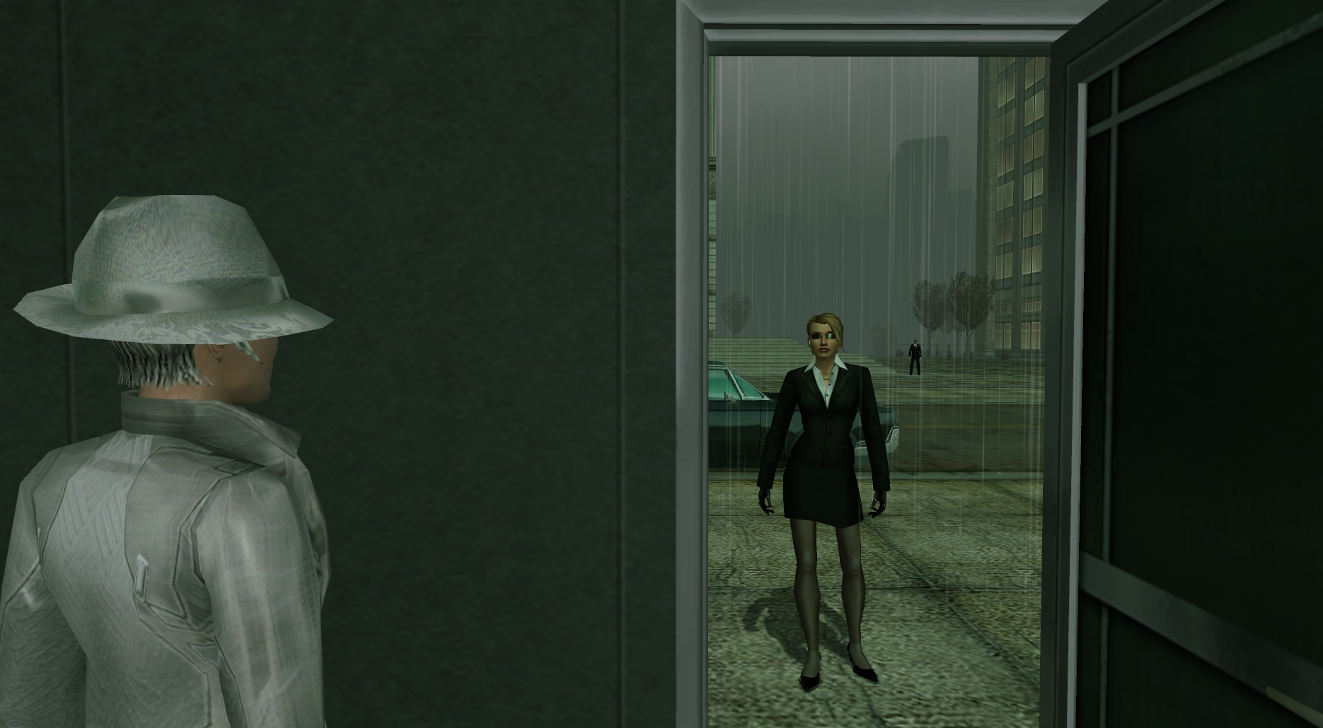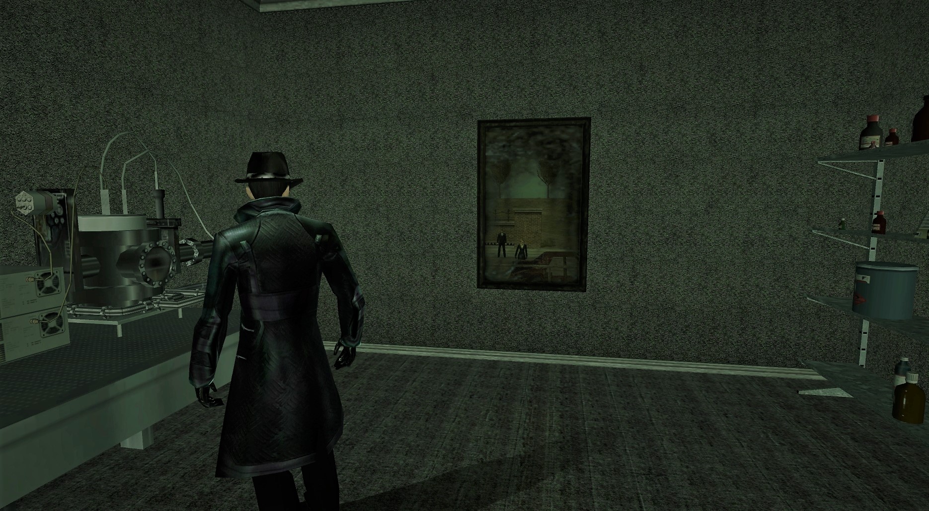The wind-driven rain, hitting the nearby window, and chattering on the sill, sounds like giggling and chuckling. It's mixing with the odd sounds from the other machinery in the lab, creating a form of mechanical music, straight from digital hell. This must be how insanity begins..