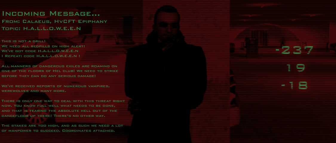 Don't miss the Halloween party at 29.10.2022. 1:00 in club Hel | Downtown, Hampton Green (Northwest Central) &gotopos -237 19-18) and talk to the bouncers to get more intel.